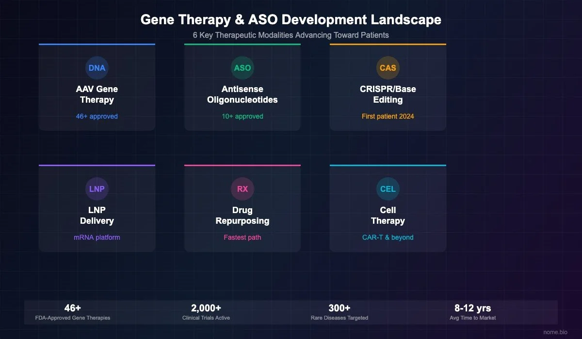 This article answers those questions with data. It is a landscape review of the gene therapy, ASO, and gene editing field as of early 2026, written for families, not investors. The numbers are sourced from the FDA, the American Society of Gene and Cell Therapy (ASGCT), and published peer-reviewed literature.